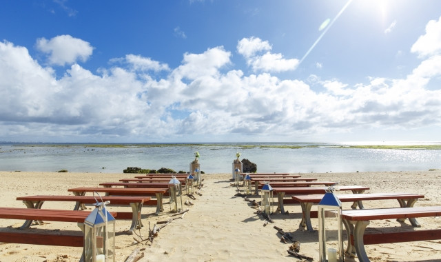 那覇空港からもほどよく距離があるため観光客がいないという静かで理想的なビーチでの、空と海に包まれた開放的な結婚式は、新郎新婦のみならずゲストや家族の皆さんにとっても忘れられない、他では味わえない貴重なひとときとなること間違いありません。